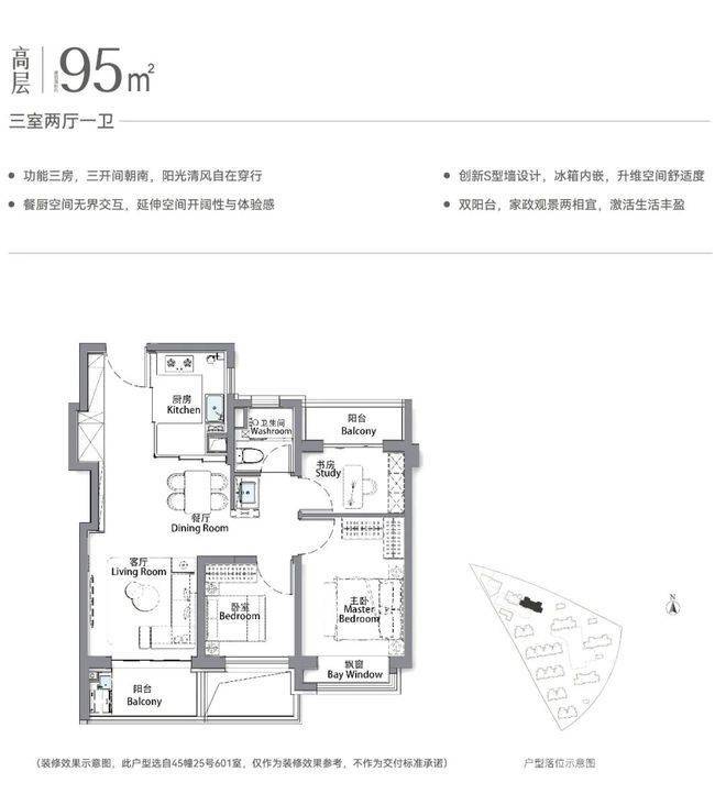 建面约95㎡高层“三阳台”户型