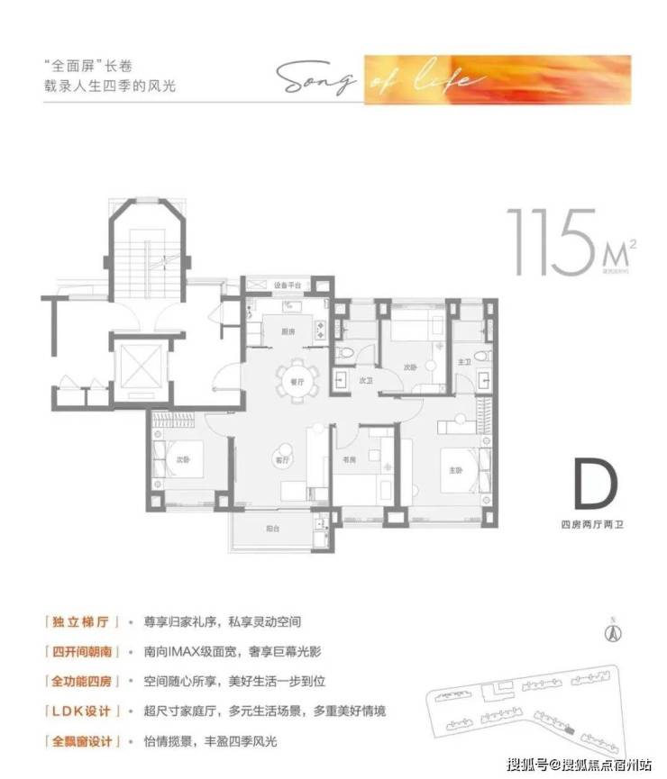 建面约115㎡4房2卫户型做到了同面积段罕见的四开间朝南+四房设计,南向IMAX级景观面,卧室阳光满溢,功能性也拉满。