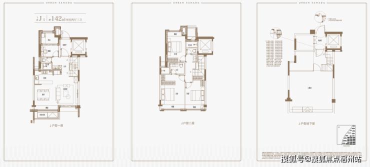 建面约139㎡上叠户型,三层是会客区,四层是居住区,阳台+露台+多个飘窗设计,附加空间非常大,在别墅类产品中实属罕见!
