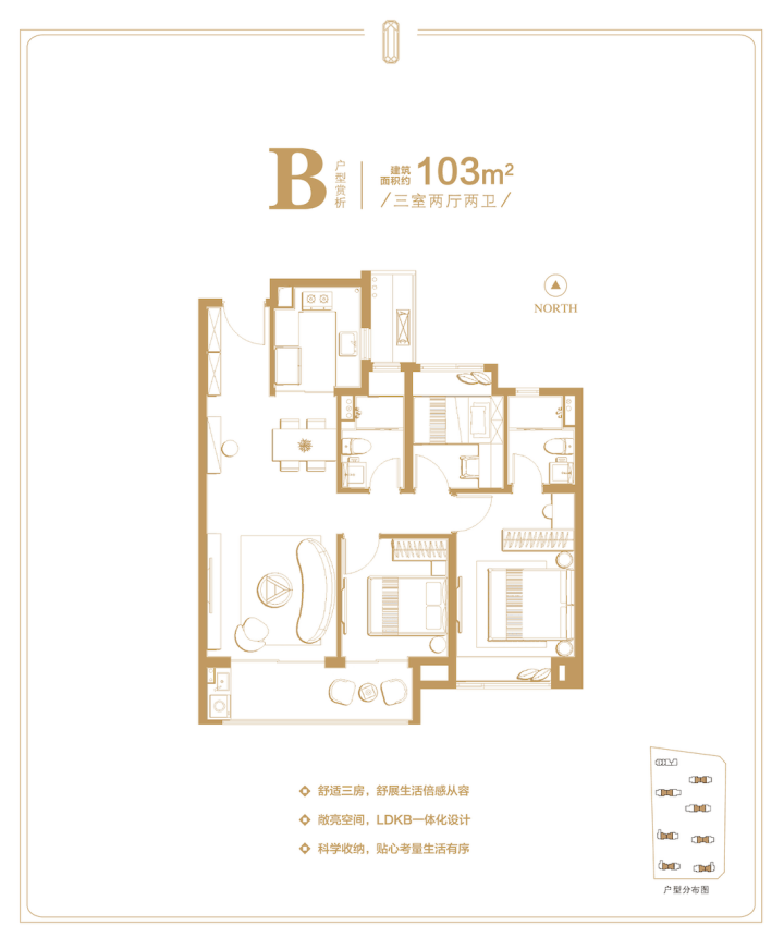 项目采用围合式布局设计,社区四至形成有效的社区边界,创造最大约59米楼间距,户户推窗见景。