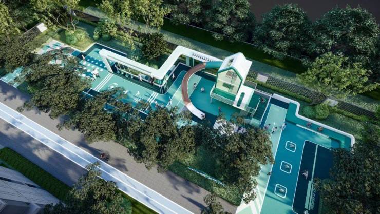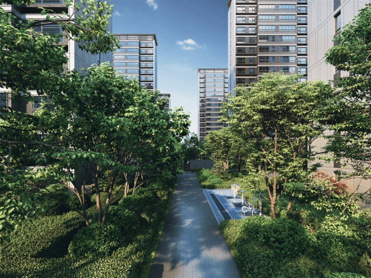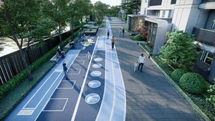 采用经典的中轴对称设计手法,社区内以中央景观轴+中央景观花园为核心,规划“一轴、一心、一环、五园”的景观布局,打造了美学会客厅,阳光大草坪,下沉式书吧、环形跑道和五个楼幢景观花园等多个主题景观组团,打造社区人性化、景观功能化、配套全龄化的全维度生态住宅。