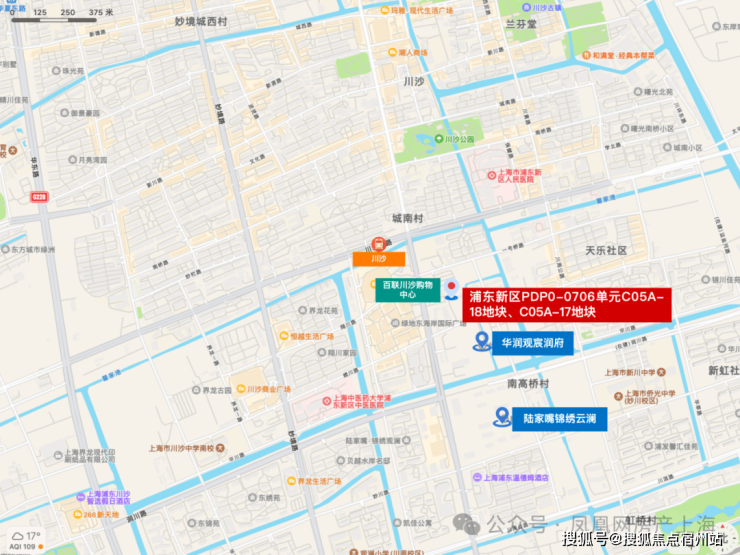 这宗引发三家房企争夺的地块,自身条件确实出众。出让面积约4.19公顷,分为两个子地块同步开发,并与西南角酒店配套整体出让。从区位来看,项目与地铁2号线川沙站直线距离仅约500米,轨道交通便捷;周边环绕百联川沙、绿地东海岸国际广场等成熟商业体,生活配套完善;教育、医疗资源也已形成系统网络,能够充分满足家庭生活的各类需求。