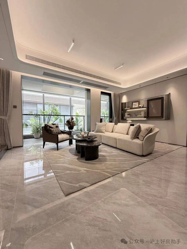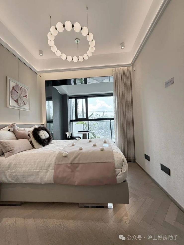 建面约127㎡三房两厅两卫,该户型最大的亮点是有着比肩豪宅的南北三阳台黄金布局,这是2025年之后,松江首个三阳台户型。