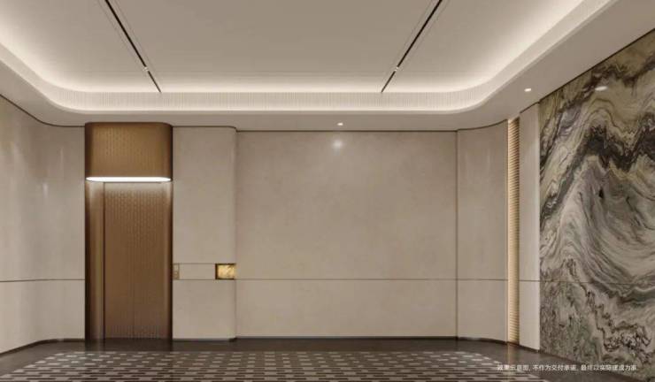入户门厅以弧形悬浮顶棚为特色,为业主带来柔和温润的归家关怀,让归家的每一步都充满舒适与惬意。