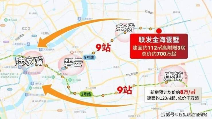 张江辐射的唐镇、前滩辐射但无地铁的三林而言,金桥东的交通能级就太强劲了; 通过9号线,2站金桥核心、9站陆家嘴。 要知道8万+唐镇到陆家嘴同样是9站,但房价差了近200万+!