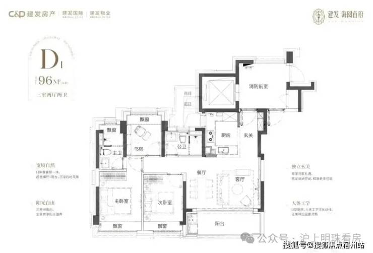 建面约96㎡3房2厅2卫
