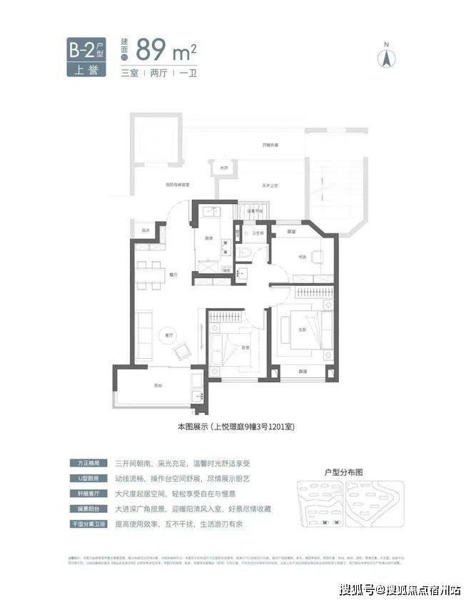 对比目前市面上同等面积产品,无论在空间感,还是整体功能布局上,国贸虹桥璟上这款105平三房两厅产品均具备爆红潜质:将客厅面宽最大化到约5.5米,这种尺度感一般在四房大平层产品上比较常见,合理利用阳台与大落地窗,不仅延伸了视野,还将餐客厅与阳台连成一体,让整体空间过渡自然,更显通透、明亮;优越的窗墙比,可以最大限度将优美的景观纳入眼帘;南向三开间面宽更是达到了约11.5米,可以说市场同户型面积段产品很难做到这样极致化;功能房间以舒适度为导向服务生活,尺度均做到了当下主流产品水平之上;并且全屋附赠6处飘窗,高附加值令人心动。