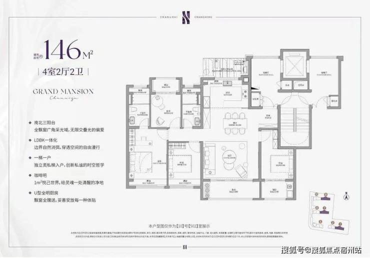 约146㎡户型升级为南北三阳台,将传统景观阳台升级为功能+景观复合空间,空间利用率会更高。