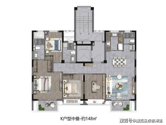 除此之外,项目还有建面约135㎡3房2厅3卫上叠、建面约148㎡4房2厅3卫中叠以及建面约148㎡4房2厅3卫下叠。叠墅产品上有露台下有庭院!