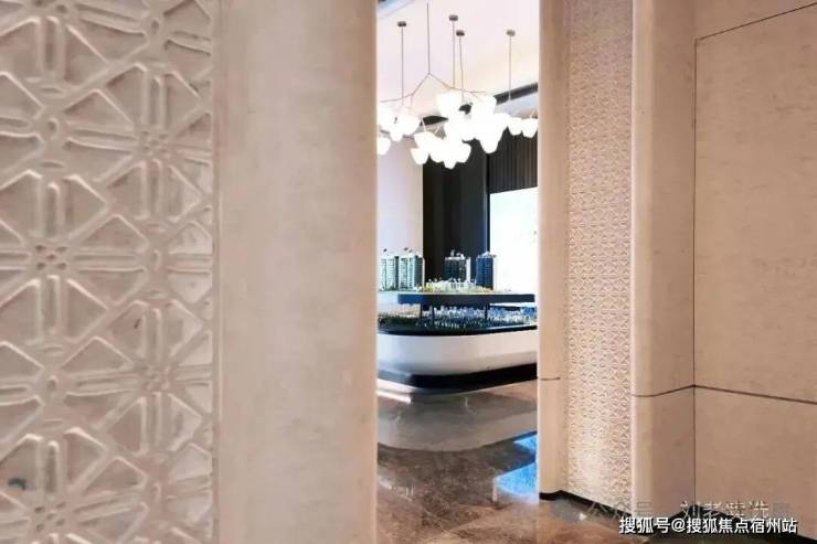 顶部定制发光云石亚克力与圆弧形的古铜色铝板交相辉映,8个西班牙宫殿沉香米黄石柱提升了尊崇感 ,漫步其间,揽风入怀,树影斑驳映入眼帘,水声潺潺入耳,归家的轻松感油然而生,笔者随手一拍,都非常的出圈。