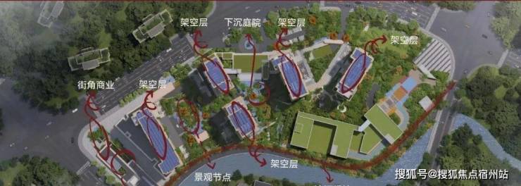 近7米垂直高差峡谷庭院,社区高约 5-8.3 米全架空层设计,形成高差约 14 米的全龄剧场。为打造悬空观景平台,不计时间与成本,放弃中轴线上一套本可销售的大户型,营造一个个通透的架空艺境,犹如散落在自然里的珠光宝盒。