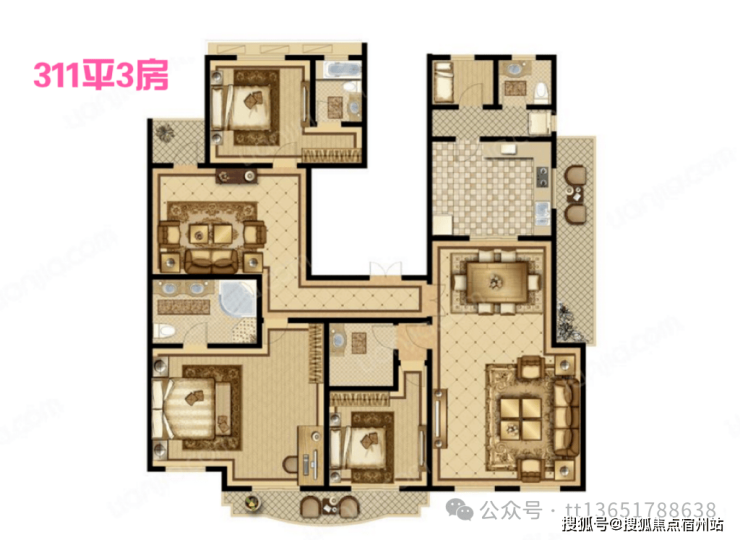 311平四房(原始户型为3房,可以做4房),2梯1户,分布在11号楼和15号楼:这种四房出房率极少,很多资深大户住进去就不愿意出来了。