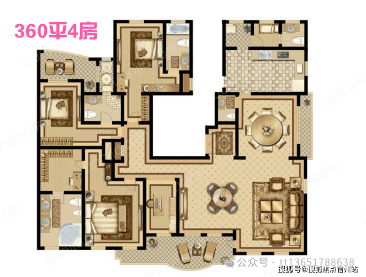3️⃣户型好:楼王位置, 360平大平层; 一层一户,两梯一户;套内使用面积290平, 得房率高达80%; 3间套房设计,功能性强; 客厅面积近100平,极具空间感; 朝南俯瞰绿化花园,视野景观好