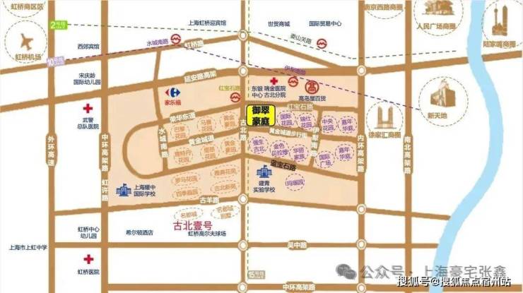 1️⃣地段好:位于 长宁古北二期,属于 “上海2035规划”中央活动区;周边 国际学校、私立学校等高端教育资源, 网球场、高尔夫球场等高端社交资源丰富;毗邻虹桥开发区,商圈成熟,配套丰富,出行便利
