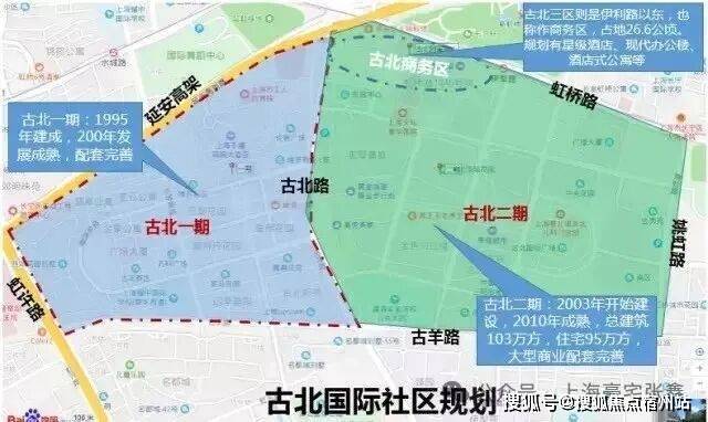 整个 古北国际社区可以分为三期,以古北路为界,由黄金城道贯穿,古北路以西为古北一期,以东为二期和三期。