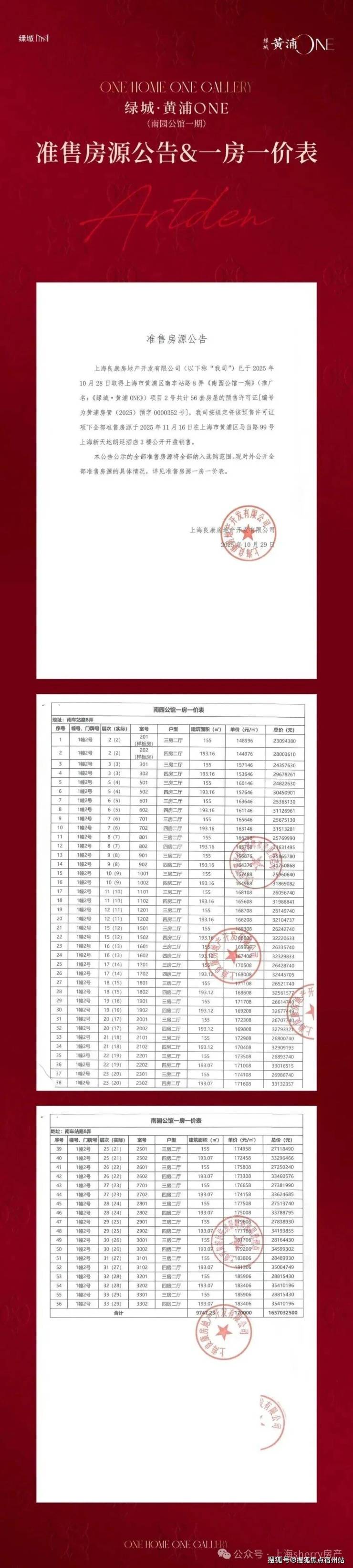据悉【绿城黄浦ONE】二期加推建面约155-193㎡3-4房(高层), 均价17.2万/㎡,总价约2300万起,收官56席,不容错过!项目接待中心持续开放中,样板间已开放!