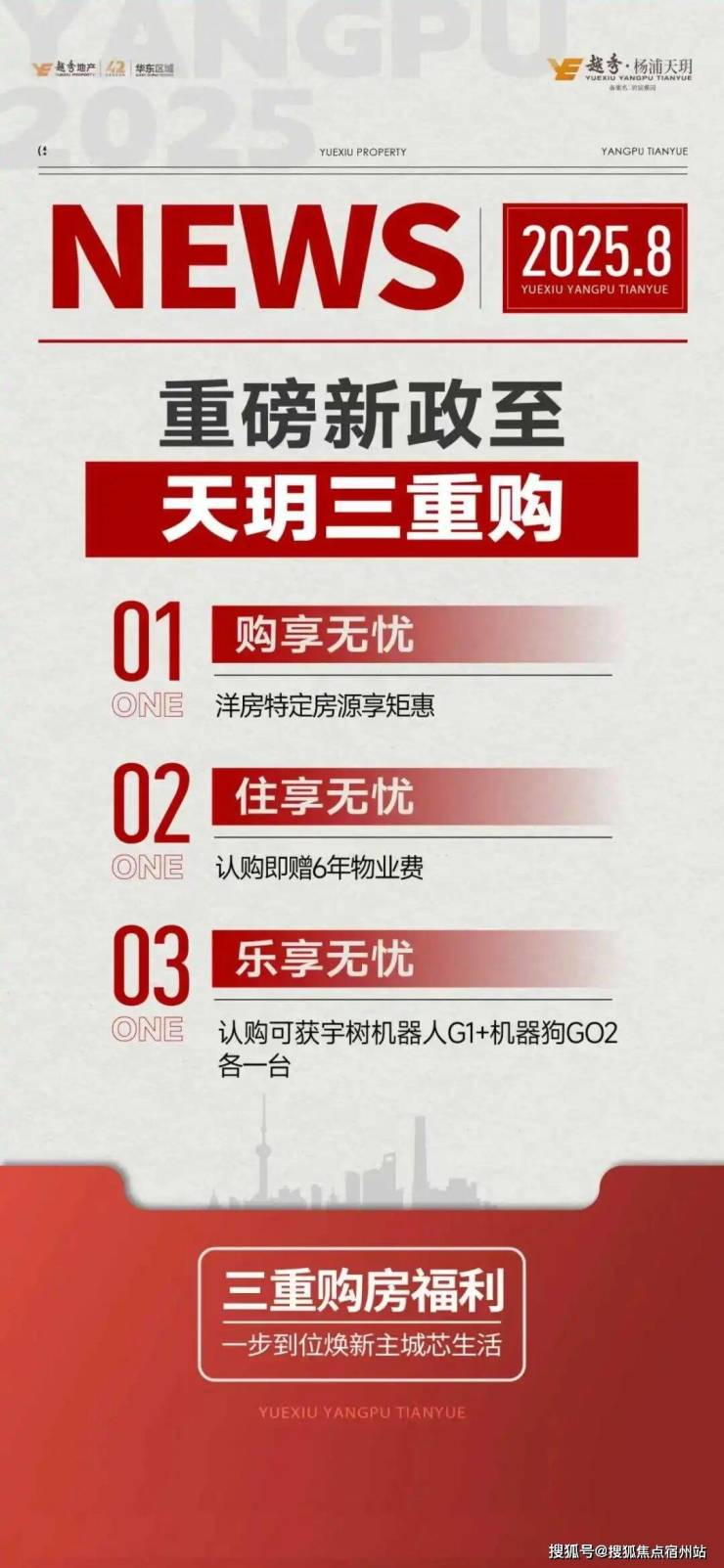 三重好礼:①洋房特定房源享钜惠、②认购即赠6年物业费、③认购可获宇树机器人G1+机器狗GO2各一台。