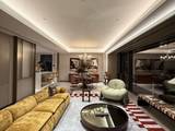 客厅采用大砖铺设地板提升视觉体验,辅以灵动的弧形吊顶与内嵌灯光设计,让整个空间愈发通透,大面积奢石岩板电视背景墙和艺术感十足的墙布,让整个屋子流淌出经典海派优雅韵味。