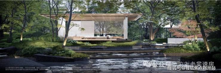 下沉式中庭花园,以⽔境、浮岛、密林,构建都市中的谧境