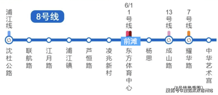 8号线是上海城市中轴线, 能直达浦东前滩、世博、中华艺术宫地标。它还是市中心唯三经过人民广场的轨交线,串联起 前滩、徐汇滨江、陆家嘴三大黄金三角,形成 “一站换乘、多核联动”交通网,还能换乘浦江线到上海南部。从这出发,前滩直达仅6站,在东方体育中心站换乘,可快速到徐汇滨江及陆家嘴。