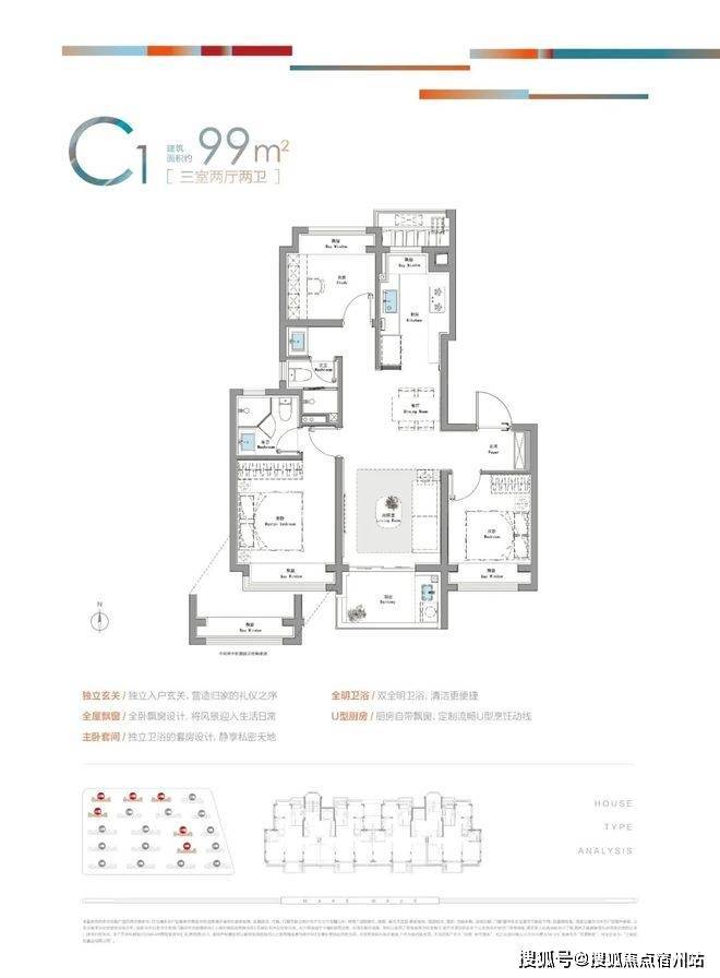 当然,还有 三开间朝南、全卧室带飘窗以及卫生间干湿分离等等细节都有配备。