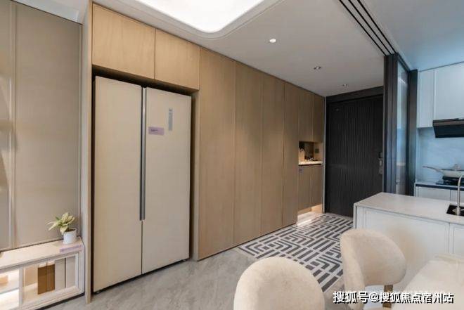 首先, S墙的设计,为了让小户型也能容纳双开门的大冰箱。