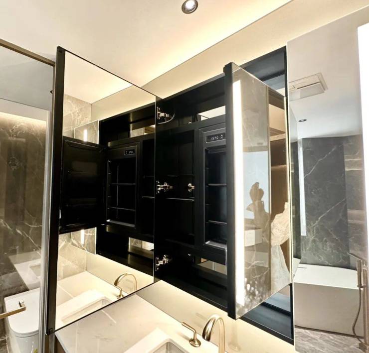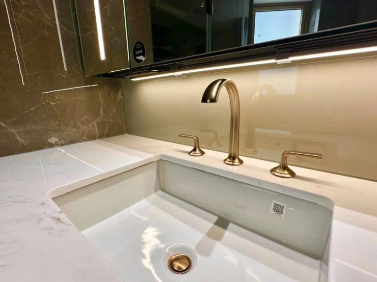 主卫配备高端奢侈品牌卡莉斯塔的主卫龙头奢华大气;智能感应灯带、双面美妆镜柜、美妆冰箱处处都是人性化细节~