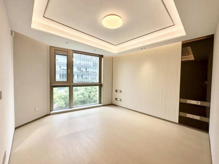 主卧大面积采光窗设计,采光效果不错,背景墙也是所见即所得,香槟金踢脚线设计细节拿捏!