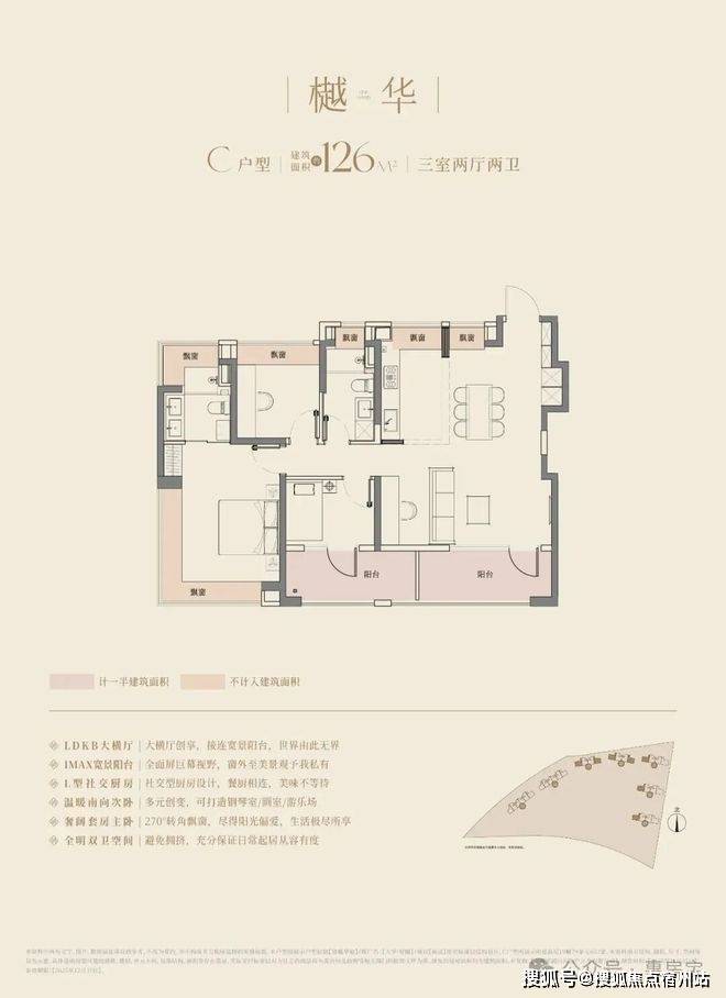 经典动静分离户型,3.5开间朝南+双阳台,阳合仅计算一半建筑面积,主卧以及主卫附赠270°转角飘窗,次卧附赠飘窗且无墙垛!✅大华·望樾售楼处电话:400-833-6309(官方售楼处电话)