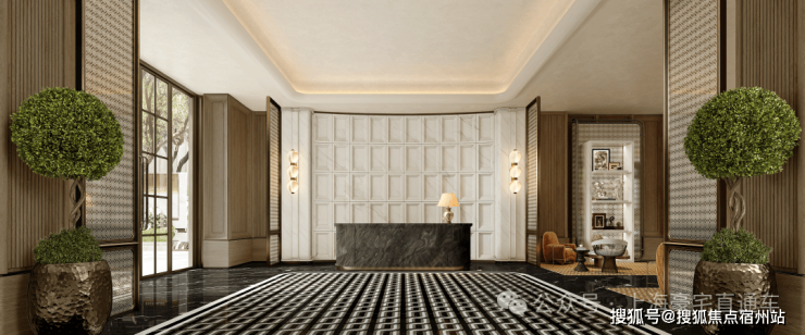 归家大堂层高约6米,融合传统门庭规制与现代酒店仪式,营造极具尊贵感的归家体验。