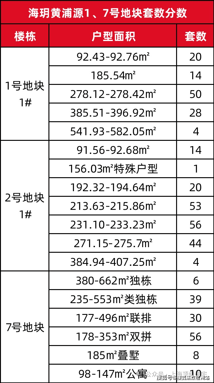 上海建工黄浦新项目「海玥黄浦源」1号地块超高层住宅、7号地块风貌别墅,大致的户型套数分布如下👇