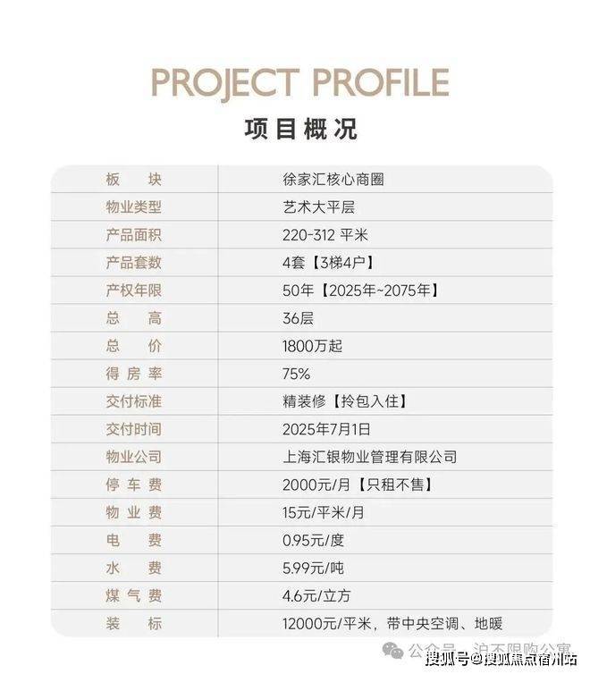 单价5万+买徐家汇地铁上盖,衡山路唯一在售艺术大平层,面积221平-312平通燃气,整层居住,5梯4户,3米层高搭配全景落地窗