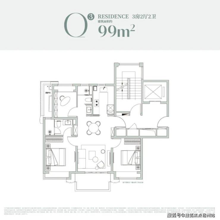 建面约99㎡三房两厅两卫|江景改善爆款:板块罕见滨江小三房,性价比拉满。南北通透全明格局,通风采光俱佳,约6米宽景阳台延伸视野,白天俯瞰园林绿意,夜晚远眺黄浦江璀璨夜景;主卧套房设计,带独立卫浴+衣帽间,保障私密性;双卫设计解决早高峰拥堵,长辈起夜更便捷;全屋动静分区,会客区与休息区互不干扰,既有家庭欢聚的热闹,也有独处的静谧。