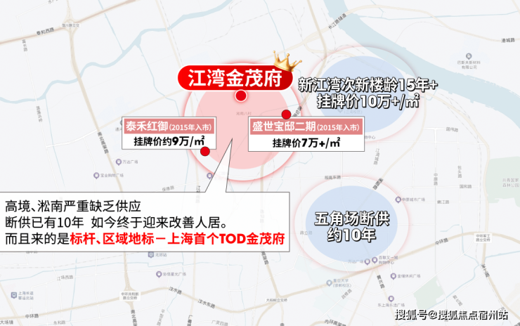宝山东部片区上一次供应还要追溯到2015年的泰禾红御和盛世宝邸, 几近10年断供 ,这两盘也是目前区域标杆,前者挂牌近9万/㎡,后者7万+/㎡。五角场同样如此,近10年断供;而新江湾次新房龄普遍15年+,挂牌价10万+/㎡,总价很高。