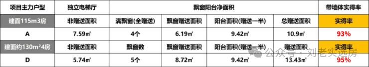 建面约115㎡3房, 实得率约93%! 常规的同面积产品,也不过约80%上下。