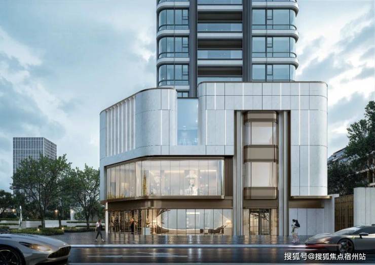 经典的对称三段式构图,将新古典与邬达克美学融合,并汲取外滩华尔道夫、吴同文住宅、国际饭店的曲线、拱形元素,将百年建筑精髓以现代语境转译为新地标之作,赋新静安百年海派风华。