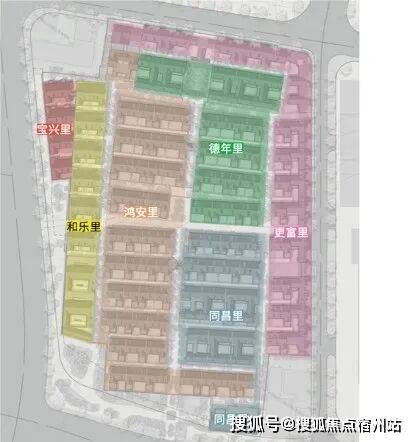 弘安里这块地原由8个街坊组成,其中东寿坊和永安里因后期加建改建较大,体量也很小,为了园区整体考虑,不再保留,延续了剩余6个组团:德年里、和乐里、宝兴里、更富里和鸿安里。