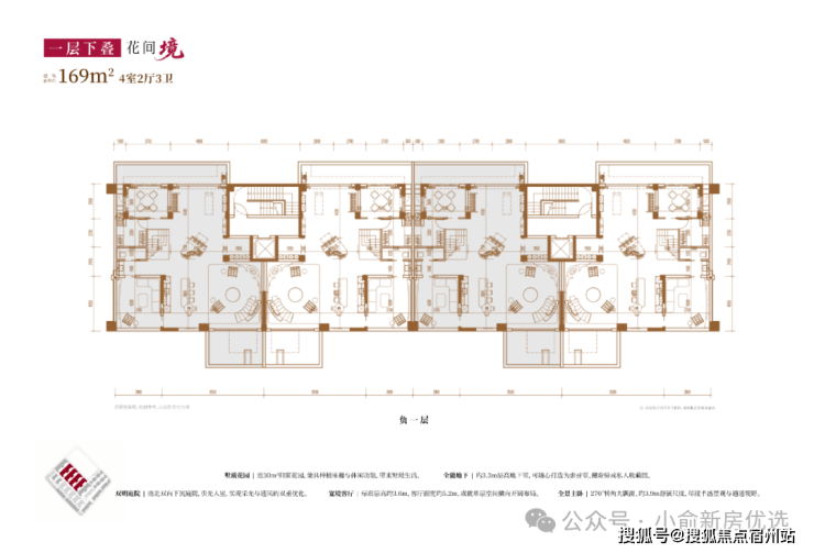 建面约169㎡4房2厅3卫(一层下叠):