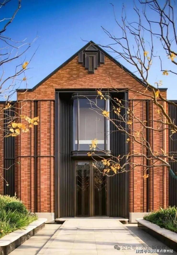 项目外立面通过 坡屋顶、红砖墙、玻璃幕墙、石材基座、金属窗、铁艺栏杆、花格砌块 七大核心元素,完成“海派基因的当代转译”。