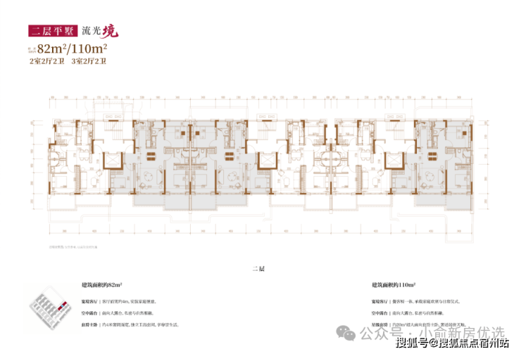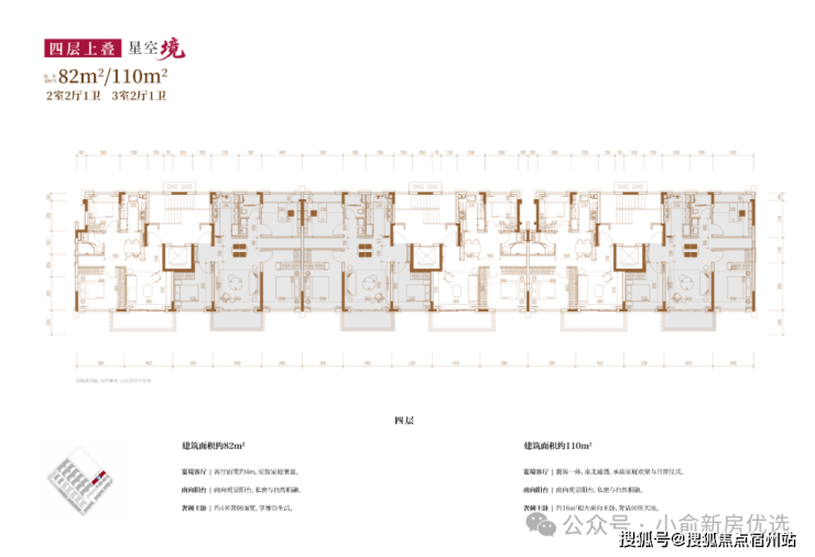 建面约82㎡2房2厅2卫/110㎡3房2厅2卫(四层上叠):