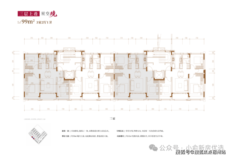 建面约99㎡3房2厅2卫(三层上叠):