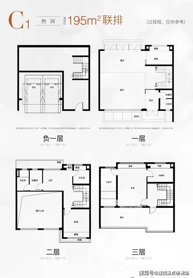 建面约132-195㎡联排别墅,一院一厅间的无界私院,拥有前庭后院+超大挑空+南北双星空露台+室内庭院等超享空间。