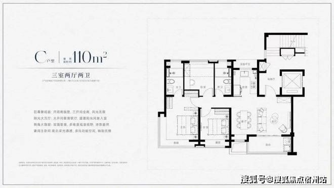 110㎡边套户型深度解析,该户型堪称“小面积段神作”,以四大设计重构改善逻辑: