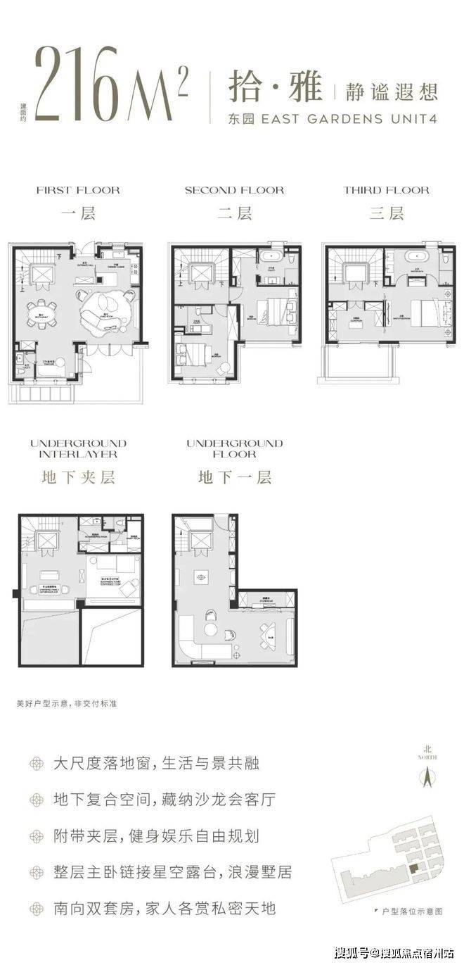 真正做到了独门独院规制,有天有地、有星空露台、有私家内园和约5.55米层高地下空间等,超大的使用空间为业主提供了更为私密和个性化的居住体验。