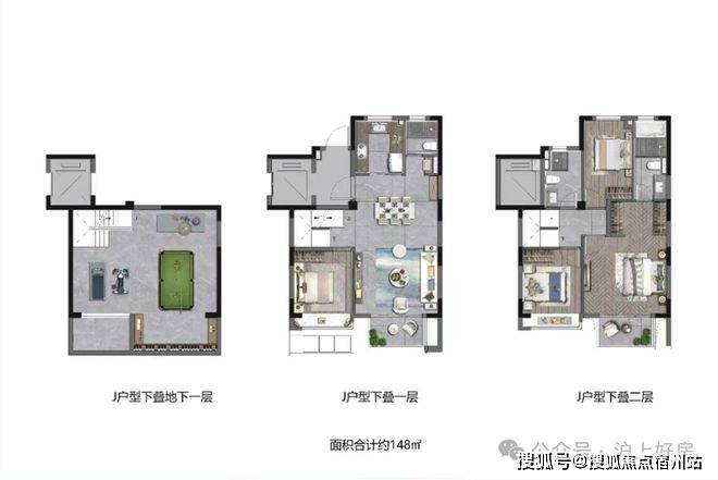 还有建面约135㎡三房上叠、建面约148㎡四房中叠以及建面约148㎡四房下叠,将多重生活场景安放在上下多层空间,满足叠墅生活进阶的期待。叠墅上有露台,下有庭院。