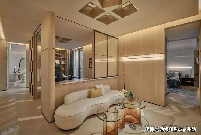 更加别具一格的设计在上方的负一层创意临展空间,透明的茶色玻璃壁炉贯穿于此,金属镶边与定制家具相应和,与华丽红沙发一道,✅✅华润士林润园售楼处电话:400 - 8824 - 258✅✅应和着海派ArtDeco风情,延展出融合历史与文化格调的能量回旋。