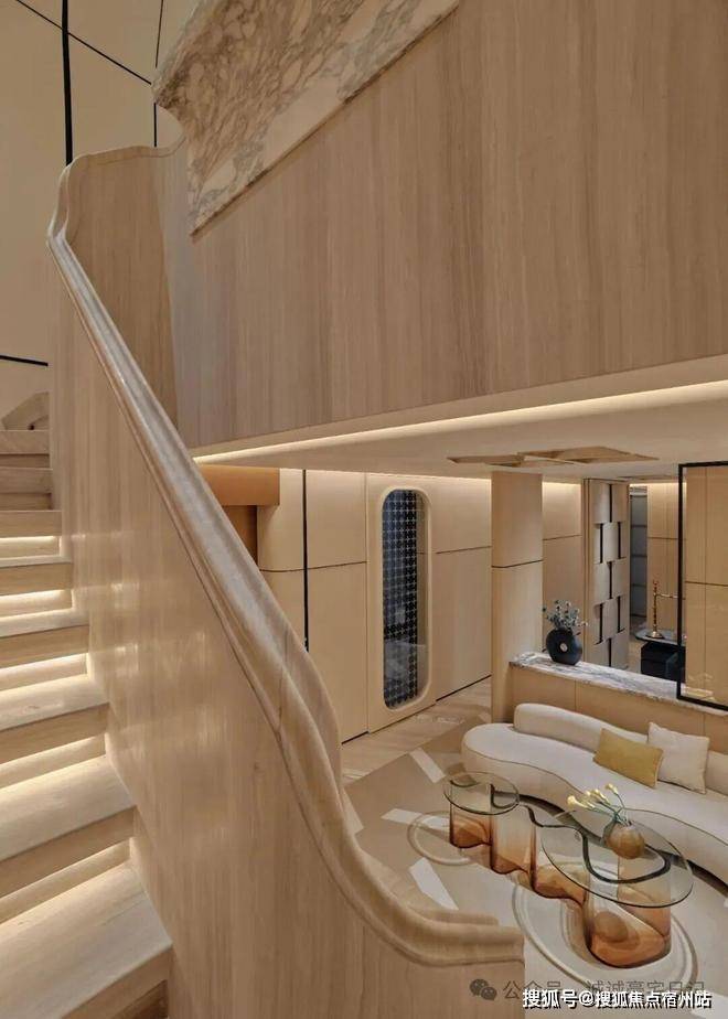 顺着弧形木质楼梯抵达地下空间,仿佛游走在一曲流动的乐章中。✅✅华润士林润园售楼处电话:400 - 8824 - 258✅✅一切都共同呼应着水的特质,传递着低调隐逸情怀与圆融个性。