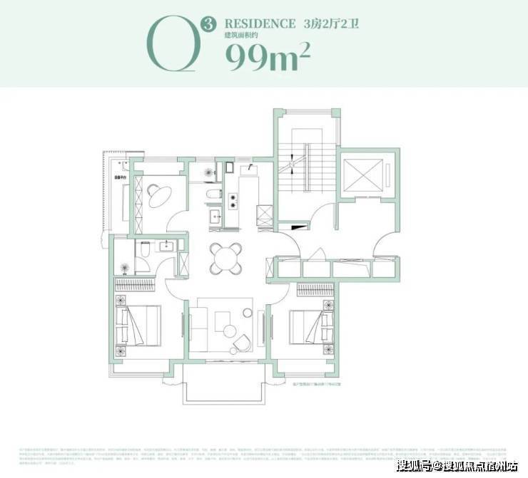 约99㎡户型设计:经典飞机户型格局!独立观景阳台!