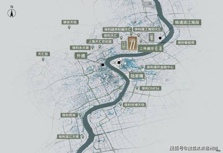 保利外滩启PARK77择址于上海一脉外滩黄金双S湾之一的杨浦滨江板块,该区域于2025年正式划入上海CAZ(中央活动区)规划,成为上海黄金CAZ之一