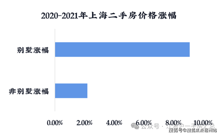 例如2021年上海楼市复苏阶段,非别墅二手房成交价回升约2.20%,而别墅产品涨幅高达约9.10%,领先约6.9个百分点!